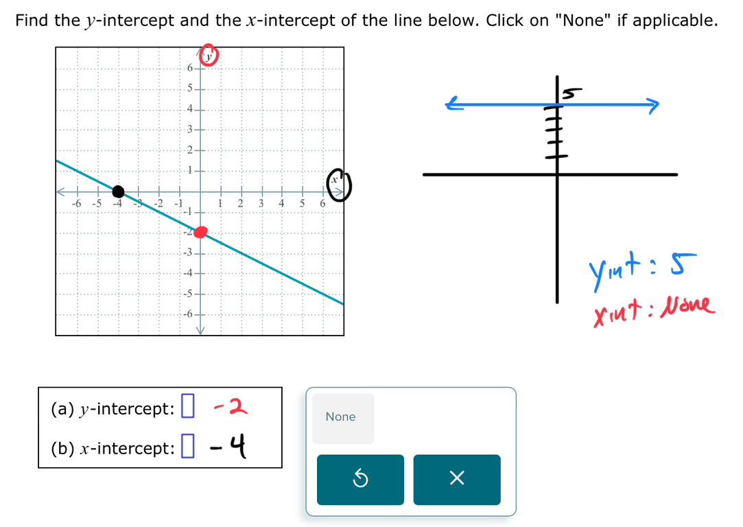 <div class='embed-container'><iframe src="https://youtube.com/embed/WIbG4kyC4Zk"></iframe></div><h3 class="f4" id="question-2-graphing-a-line-given-its-equation-in-slope-intercept-form-integer-slope">Question 2: Graphing a line given its equation in slope-intercept form: Integer slope<a class='anchor' href='#question-2-graphing-a-line-given-its-equation-in-slope-intercept-form-integer-slope' aria-label="Permalink to Question 2: Graphing a line given its equation in slope-intercept form: Integer slope" role="complementary" aria-hidden="true">#</a></h3><img src="https://imagedelivery.net/phxEHgsq3j8gSnfNAJVJSQ/NODE3_F348F8F4-8FD1-472E-89E6-7DA1CDFDBA81/public" style="background-color:initial;max-width:min(100%,2325px);max-height:min(971px);;background-image:url(https://imagedelivery.net/phxEHgsq3j8gSnfNAJVJSQ/NODE3_F348F8F4-8FD1-472E-89E6-7DA1CDFDBA81/public);height:auto;width:100%;object-fit:cover;background-size:cover;display:block;" width="2325" height="971"><h3 class="f4" id="question-3-graphing-a-line-given-its-equation-in-slope-intercept-form-fractional-slope">Question 3: Graphing a line given its equation in slope-intercept form: Fractional slope<a class='anchor' href='#question-3-graphing-a-line-given-its-equation-in-slope-intercept-form-fractional-slope' aria-label="Permalink to Question 3: Graphing a line given its equation in slope-intercept form: Fractional slope" role="complementary" aria-hidden="true">#</a></h3><img src="https://imagedelivery.net/phxEHgsq3j8gSnfNAJVJSQ/NODE3_08AD5DDA-F1B8-42EE-99E1-394339FBEDAD/public" style="background-color:initial;max-width:min(100%,2345px);max-height:min(1074px);;background-image:url(https://imagedelivery.net/phxEHgsq3j8gSnfNAJVJSQ/NODE3_08AD5DDA-F1B8-42EE-99E1-394339FBEDAD/public);height:auto;width:100%;object-fit:cover;background-size:cover;display:block;" width="2345" height="1074"><h3 class="f4" id="question-4-graphing-a-line-given-its-equation-in-standard-form">Question 4: Graphing a line given its equation in standard form<a class='anchor' href='#question-4-graphing-a-line-given-its-equation-in-standard-form' aria-label="Permalink to Question 4: Graphing a line given its equation in standard form" role="complementary" aria-hidden="true">#</a></h3>More work show on Test Work Page below <img src="https://imagedelivery.net/phxEHgsq3j8gSnfNAJVJSQ/NODE3_E1B3C247-440C-4396-84EF-8B34CAA8673F/public" style="background-color:initial;max-width:min(100%,1327px);max-height:min(1080px);;background-image:url(https://imagedelivery.net/phxEHgsq3j8gSnfNAJVJSQ/NODE3_E1B3C247-440C-4396-84EF-8B34CAA8673F/public);height:auto;width:100%;object-fit:cover;background-size:cover;display:block;" width="1327" height="1080"><h3 class="f4" id="question-5-graphing-a-vertical-or-horizontal-line">Question 5: Graphing a vertical or horizontal line<a class='anchor' href='#question-5-graphing-a-vertical-or-horizontal-line' aria-label="Permalink to Question 5: Graphing a vertical or horizontal line" role="complementary" aria-hidden="true">#</a></h3>More work show on Test Work Page below. <img src="https://imagedelivery.net/phxEHgsq3j8gSnfNAJVJSQ/NODE3_28C82741-A4F2-427E-8A70-6622720DAC9A/public" style="background-color:initial;max-width:min(100%,775px);max-height:min(880px);;background-image:url(https://imagedelivery.net/phxEHgsq3j8gSnfNAJVJSQ/NODE3_28C82741-A4F2-427E-8A70-6622720DAC9A/public);height:auto;width:100%;object-fit:cover;background-size:cover;display:block;" width="775" height="880"><h3 class="f4" id="question-6-finding-x-and-y-intercepts-given-the-graph-of-a-line-on-a-grid">Question 6: Finding x- and y-intercepts given the graph of a line on a grid<a class='anchor' href='#question-6-finding-x-and-y-intercepts-given-the-graph-of-a-line-on-a-grid' aria-label="Permalink to Question 6: Finding x- and y-intercepts given the graph of a line on a grid" role="complementary" aria-hidden="true">#</a></h3><img src="https://imagedelivery.net/phxEHgsq3j8gSnfNAJVJSQ/NODE3_9EC2FE0B-2E22-41C4-8DC3-1CBCD53D452D/public" style="background-color:initial;max-width:min(100%,1294px);max-height:min(917px);;background-image:url(https://imagedelivery.net/phxEHgsq3j8gSnfNAJVJSQ/NODE3_9EC2FE0B-2E22-41C4-8DC3-1CBCD53D452D/public);height:auto;width:100%;object-fit:cover;background-size:cover;display:block;" width="1294" height="917"><h3 class="f4" id="question-7">Question 7:<a class='anchor' href='#question-7' aria-label="Permalink to Question 7:" role="complementary" aria-hidden="true">#</a></h3><img src="https://imagedelivery.net/phxEHgsq3j8gSnfNAJVJSQ/NODE3_64BD5E46-CC61-4526-BDA3-983B62916367/public" style="background-color:initial;max-width:min(100%,1536px);max-height:min(1534px);;background-image:url(https://imagedelivery.net/phxEHgsq3j8gSnfNAJVJSQ/NODE3_64BD5E46-CC61-4526-BDA3-983B62916367/public);height:auto;width:100%;object-fit:cover;background-size:cover;display:block;" width="1536" height="1534"><h3 class="f4" id="question-8-finding-x-and-y-intercepts-of-a-line-given-the-equation-advanced">Question 8: Finding x- and y-intercepts of a line given the equation: Advanced<a class='anchor' href='#question-8-finding-x-and-y-intercepts-of-a-line-given-the-equation-advanced' aria-label="Permalink to Question 8: Finding x- and y-intercepts of a line given the equation: Advanced" role="complementary" aria-hidden="true">#</a></h3><div></div> <img src="https://imagedelivery.net/phxEHgsq3j8gSnfNAJVJSQ/NODE3_CAFFA721-E0D3-434A-B65A-79183382CC28/public" style="background-color:initial;max-width:min(100%,1536px);max-height:min(684px);;background-image:url(https://imagedelivery.net/phxEHgsq3j8gSnfNAJVJSQ/NODE3_CAFFA721-E0D3-434A-B65A-79183382CC28/public);height:auto;width:100%;object-fit:cover;background-size:cover;display:block;" width="1536" height="684"> <img src="https://imagedelivery.net/phxEHgsq3j8gSnfNAJVJSQ/NODE3_9955C3E1-EDE0-46E3-8172-82A8EE36619E/public" style="background-color:initial;max-width:min(100%,1752px);max-height:min(1001px);;background-image:url(https://imagedelivery.ne
