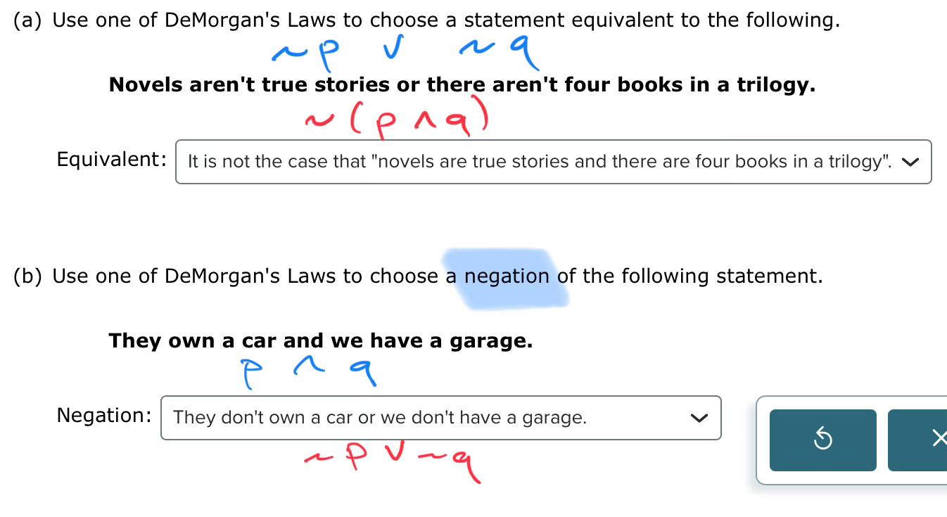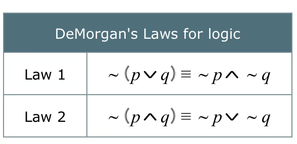 Topic 11: Using De Morgan's Laws to identify negations and equivalent statements