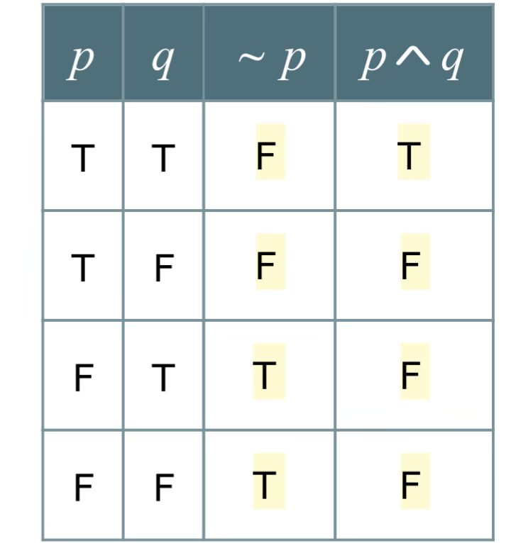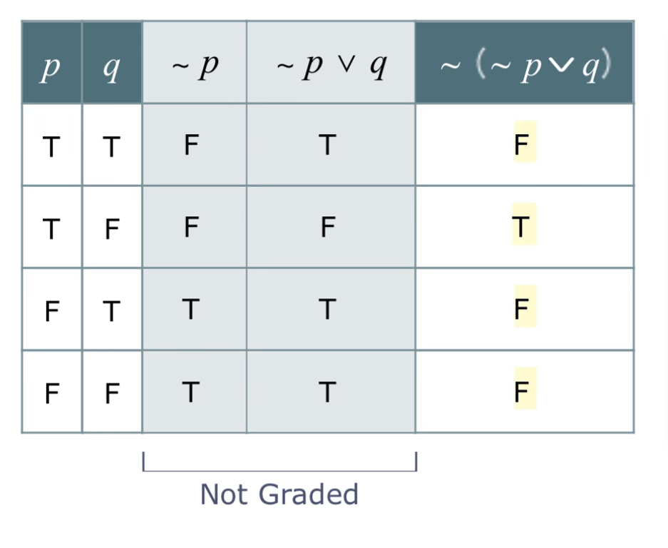 Topic 8: Introduction to truth tables with negations, conjunctions, or disjunctions