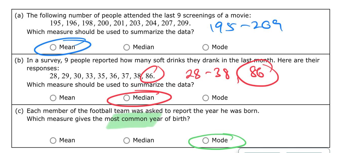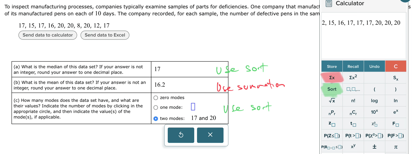 To find mean: Use ALEKS calculator and the summation button and divide by how many there are.